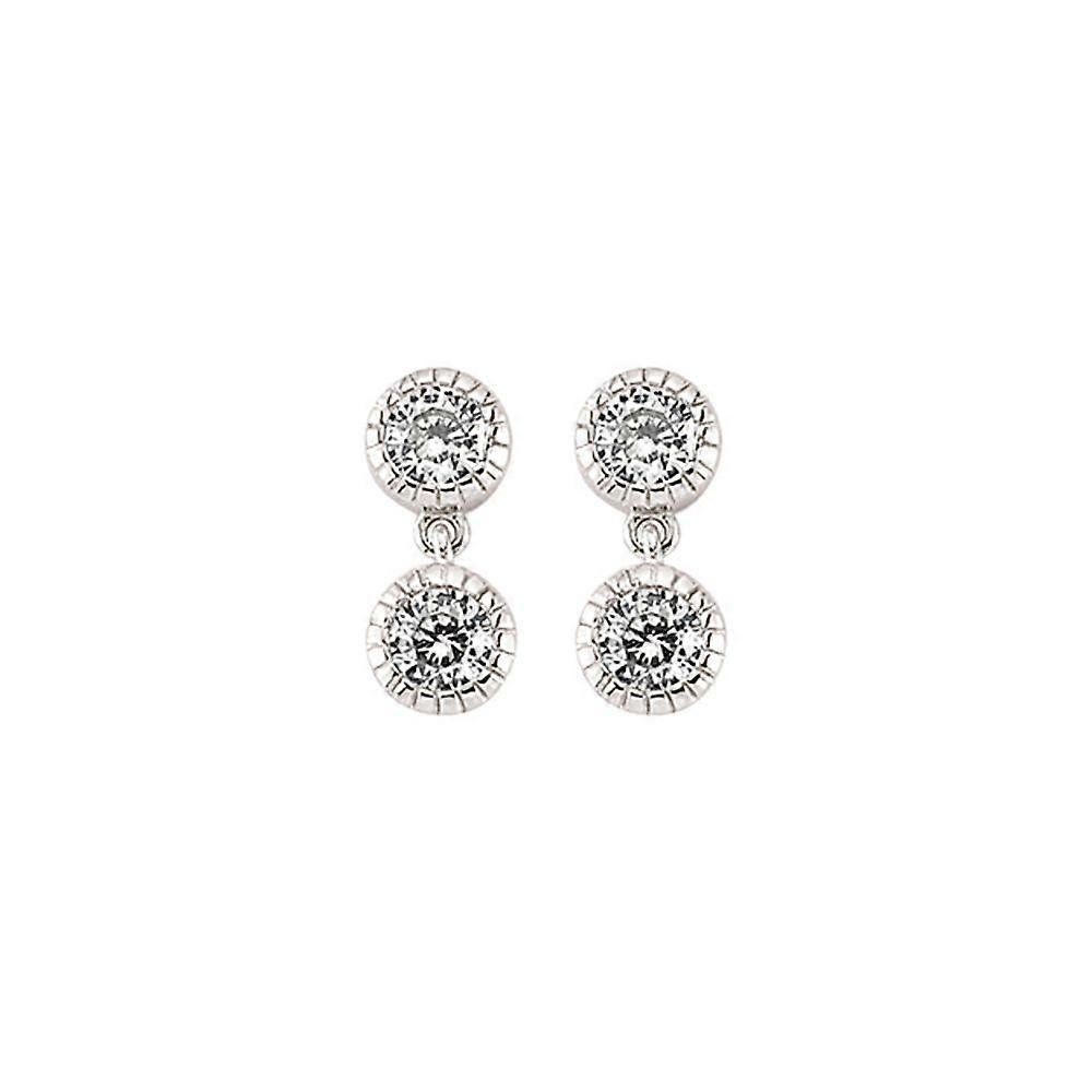 Jewelco London Ladies Sterling Silver Cubic Zirconia Twin Drop Stud Earrings