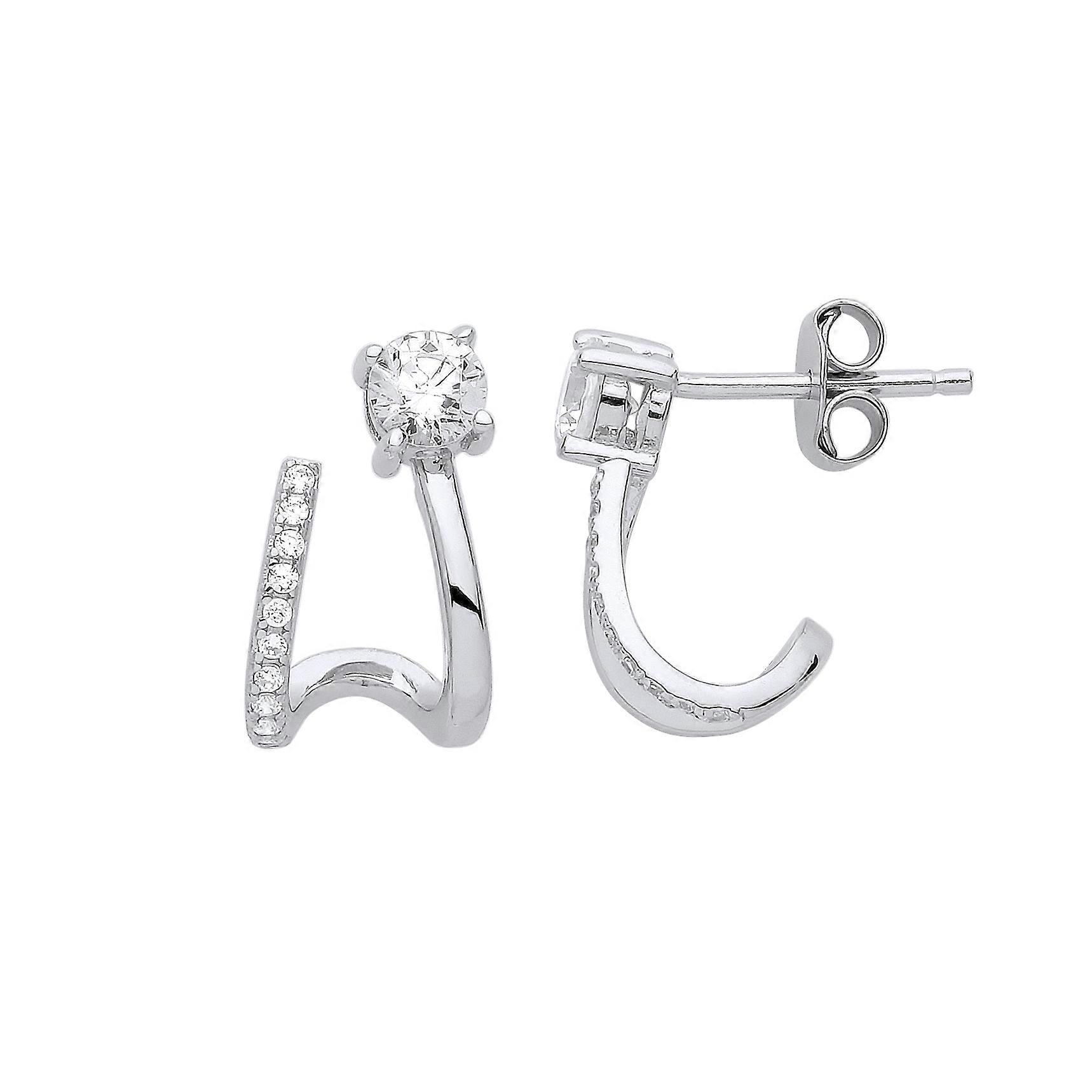 Jewelco London Ladies Sterling Silver Cubic Zirconia Wavy Solitaire Drop Earrings