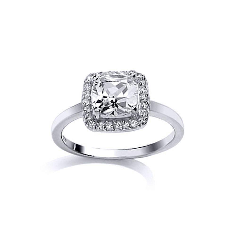 Jewelco London Ladies Sterling Silver Cushion Cubic Zirconia Halo Cluster Solitaire Engagement Ring