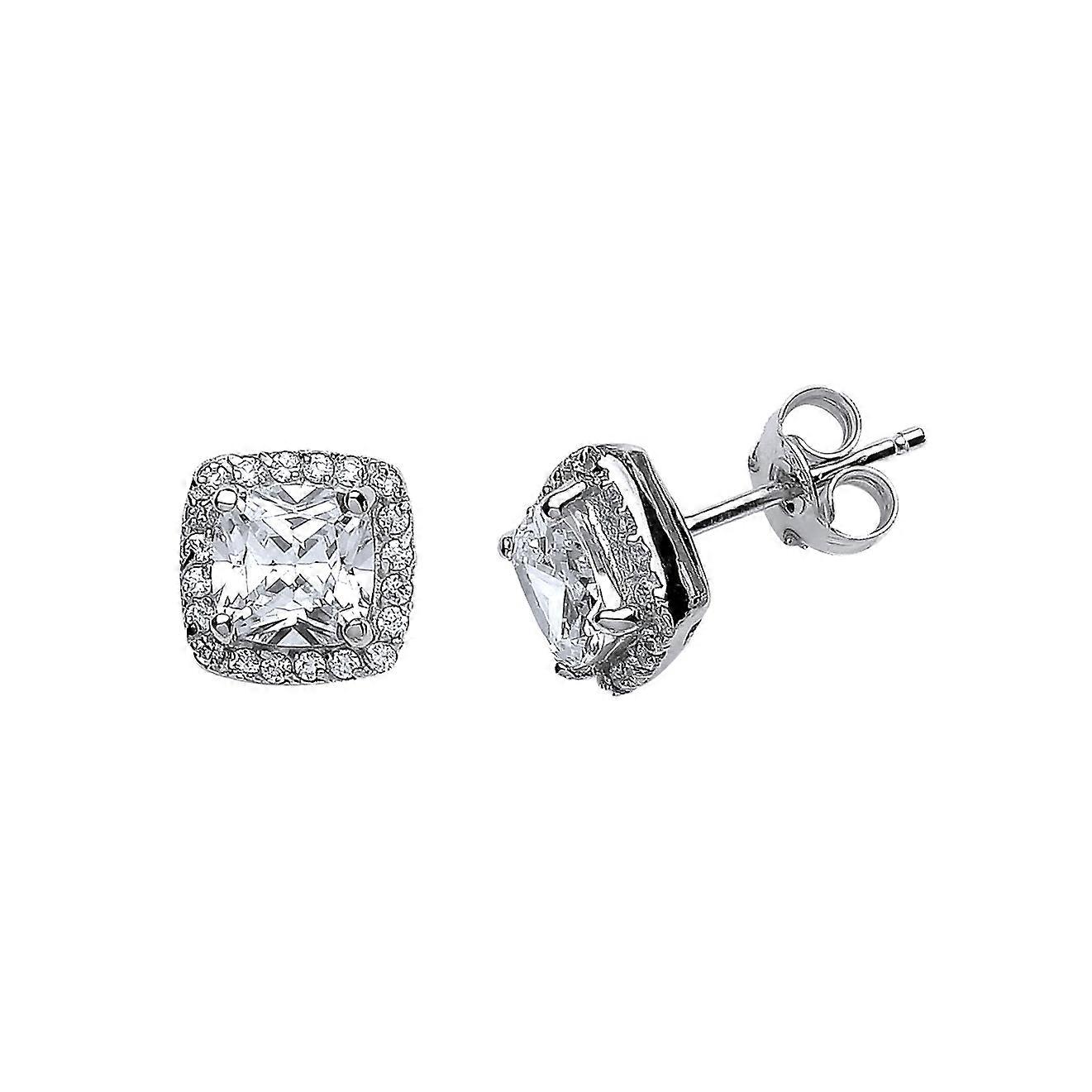Jewelco London Ladies Sterling Silver Cushion Cubic Zirconia Halo Cluster Stud Earrings