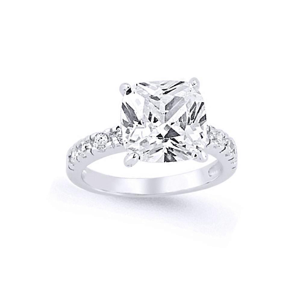 Jewelco London Ladies Sterling Silver Cushion Cubic Zirconia Shoulder-Set 4 Claw Solitaire Engagement Ring