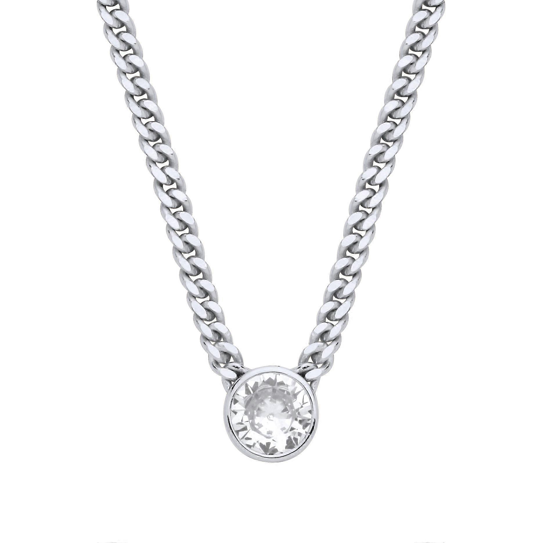 Jewelco London Ladies Sterling Silver CZ Solitaire Collarette Curb Chain Lavalier Necklace 3mm 16 + 1.5 inch