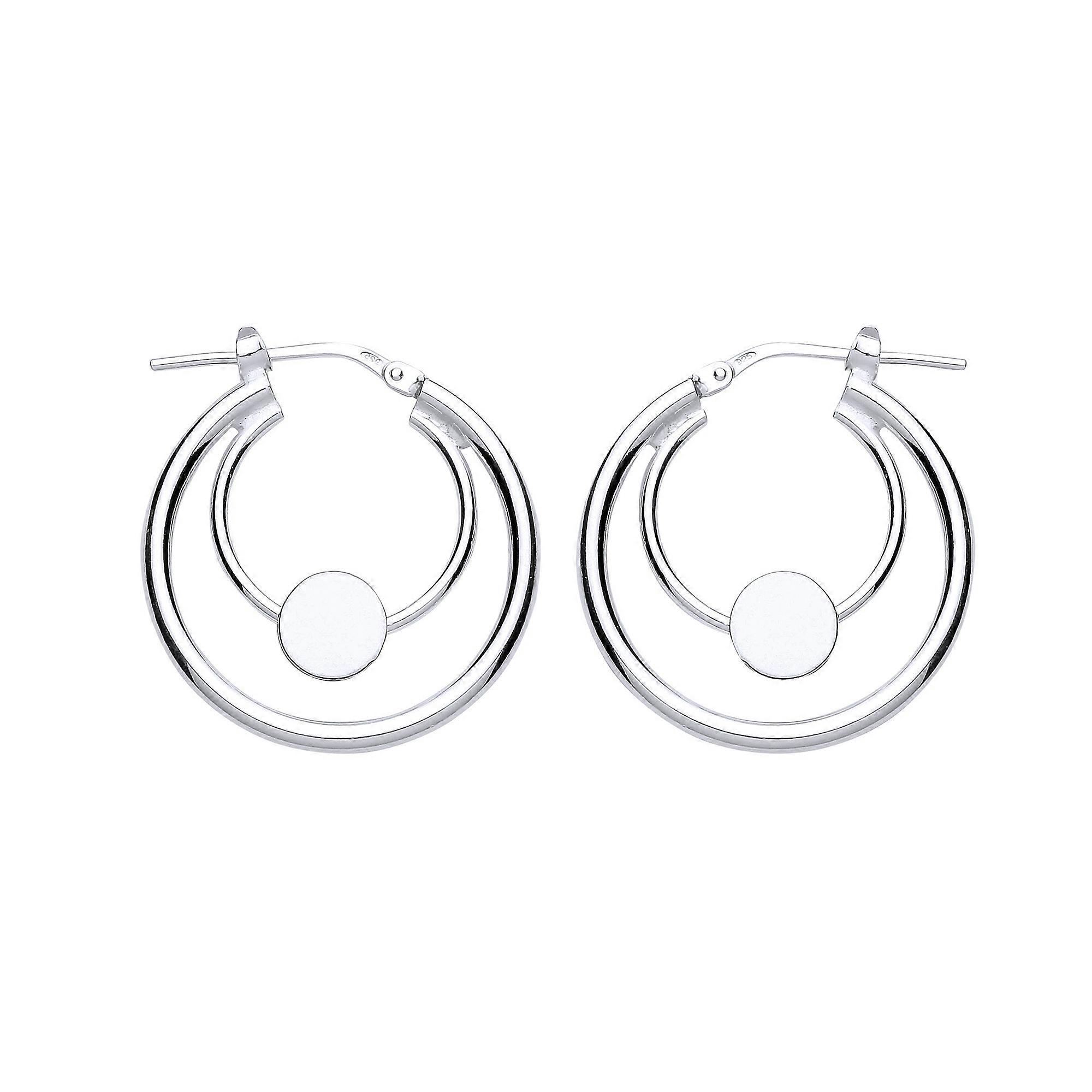 Jewelco London Ladies Sterling Silver Disc Double Hoop Earrings 18mm
