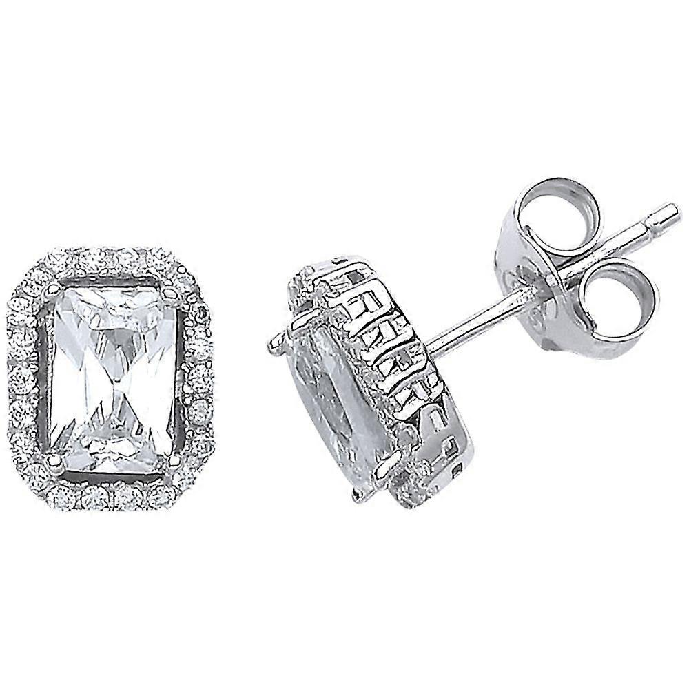 Jewelco London Ladies Sterling Silver Emerald Cut Cubic Zirconia Halo Stud Earrings