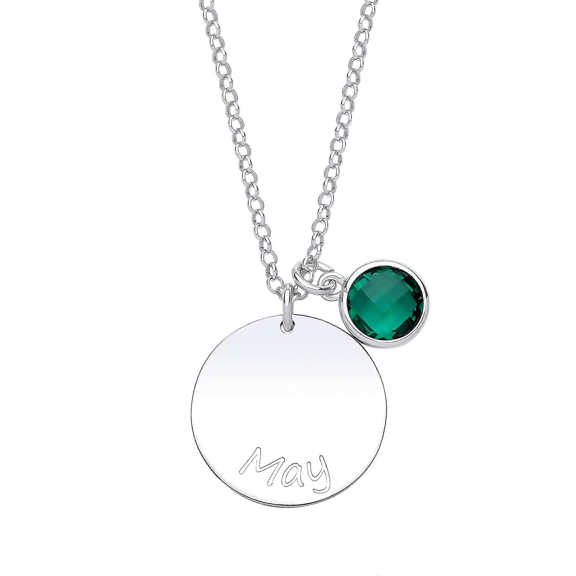 Jewelco London Ladies Sterling Silver Emerald-Green Checkerboard Button Cubic Zirconia Birthstone Round Tag Medallion Necklace 16 inch