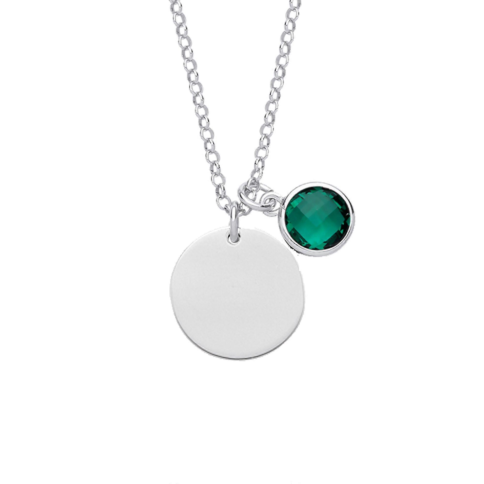 Jewelco London Ladies Sterling Silver Emerald-Green Checkerboard Button Cubic Zirconia May Birthstone Medallion Necklace 16 inch