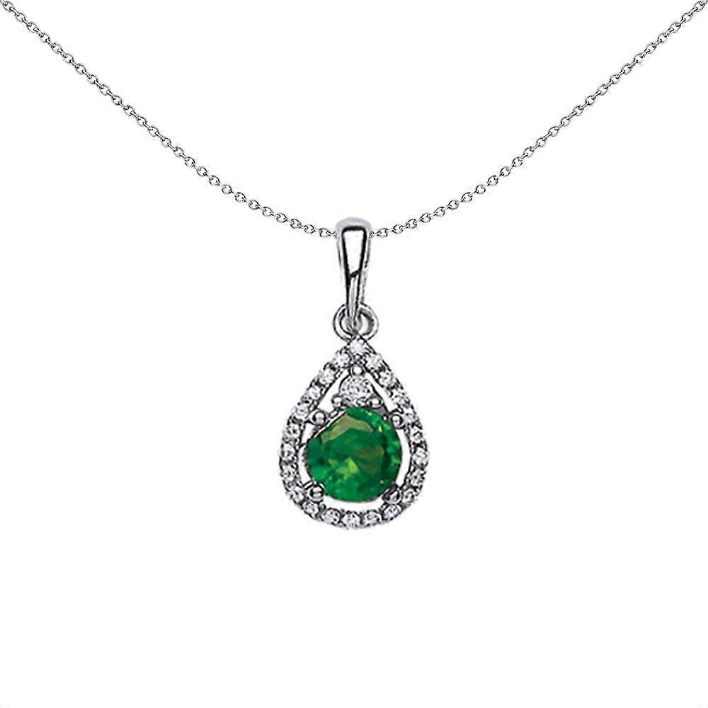 Jewelco London Ladies Sterling Silver Emerald-Green Cubic Zirconia Halo Tear of Joy Pendant Necklace 18 inch