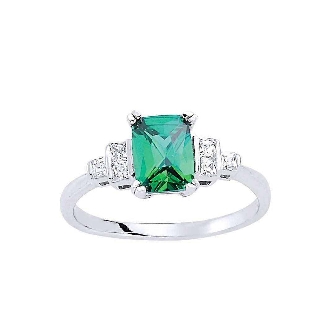 Jewelco London Ladies Sterling Silver Emerald-Green Emerald and Princess Cut Cubic Zirconia Solitaire Engagement Ring