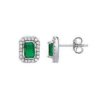 Jewelco London Ladies Sterling Silver Emerald-Green emerald cut Cubic Zirconia Football Stadium Stud Earrings
