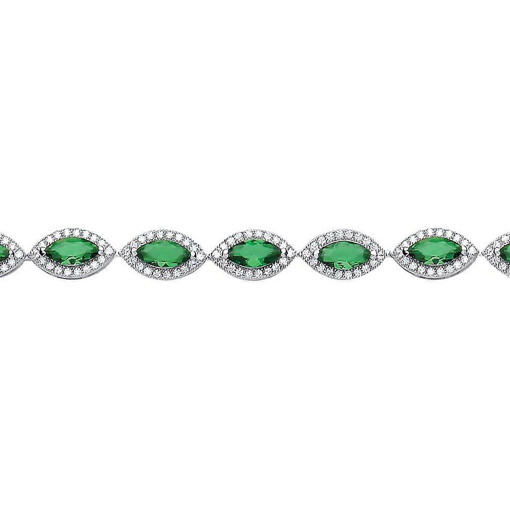 Jewelco London Ladies Sterling Silver Emerald-Green Marquise Cubic zirconia Halo Cat's Eye Tennis Bracelet 9mm 6.5 inch
