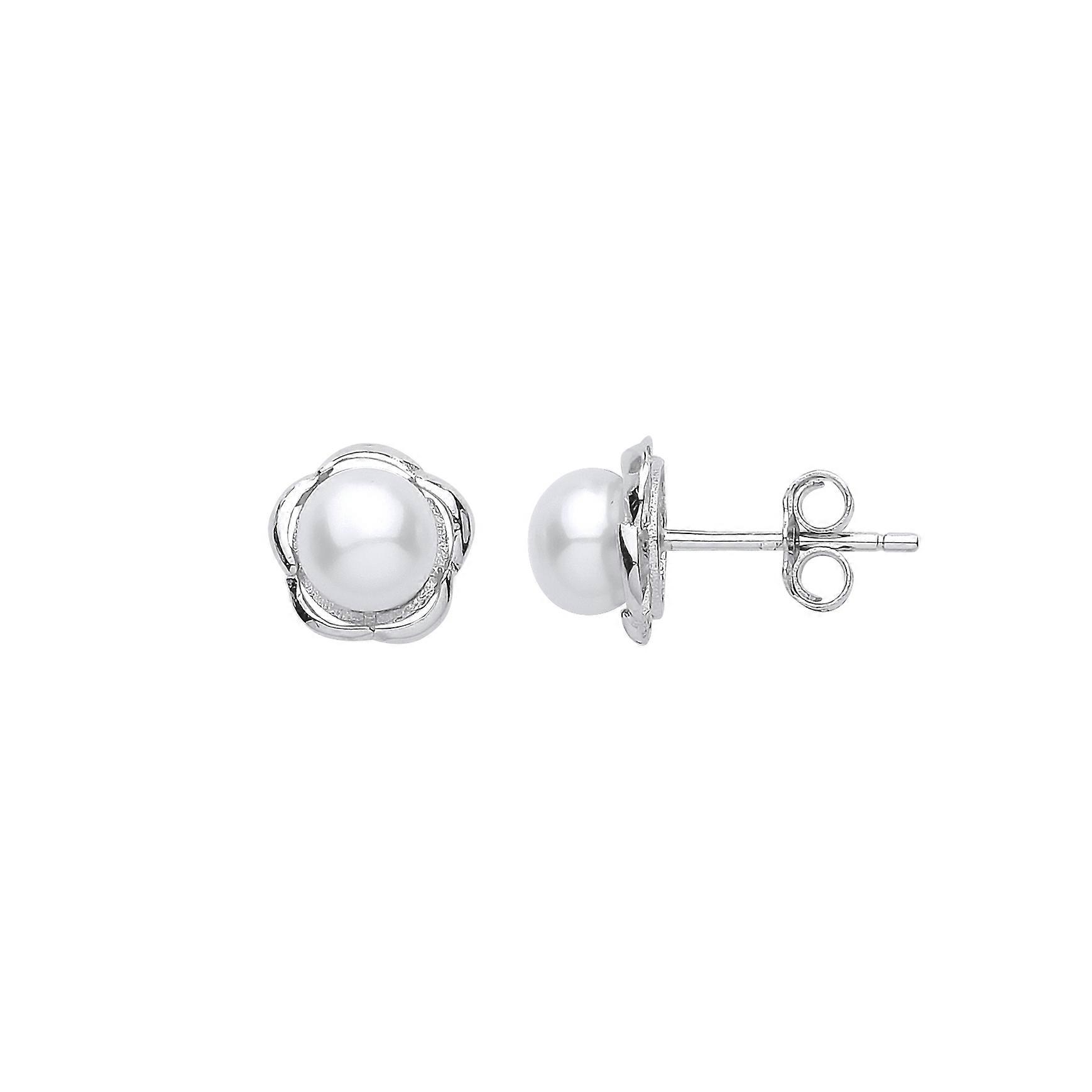 Jewelco London Ladies Sterling Silver Freshwater Cultured Pearl Full Moon Daisy Stud Earrings 6mm