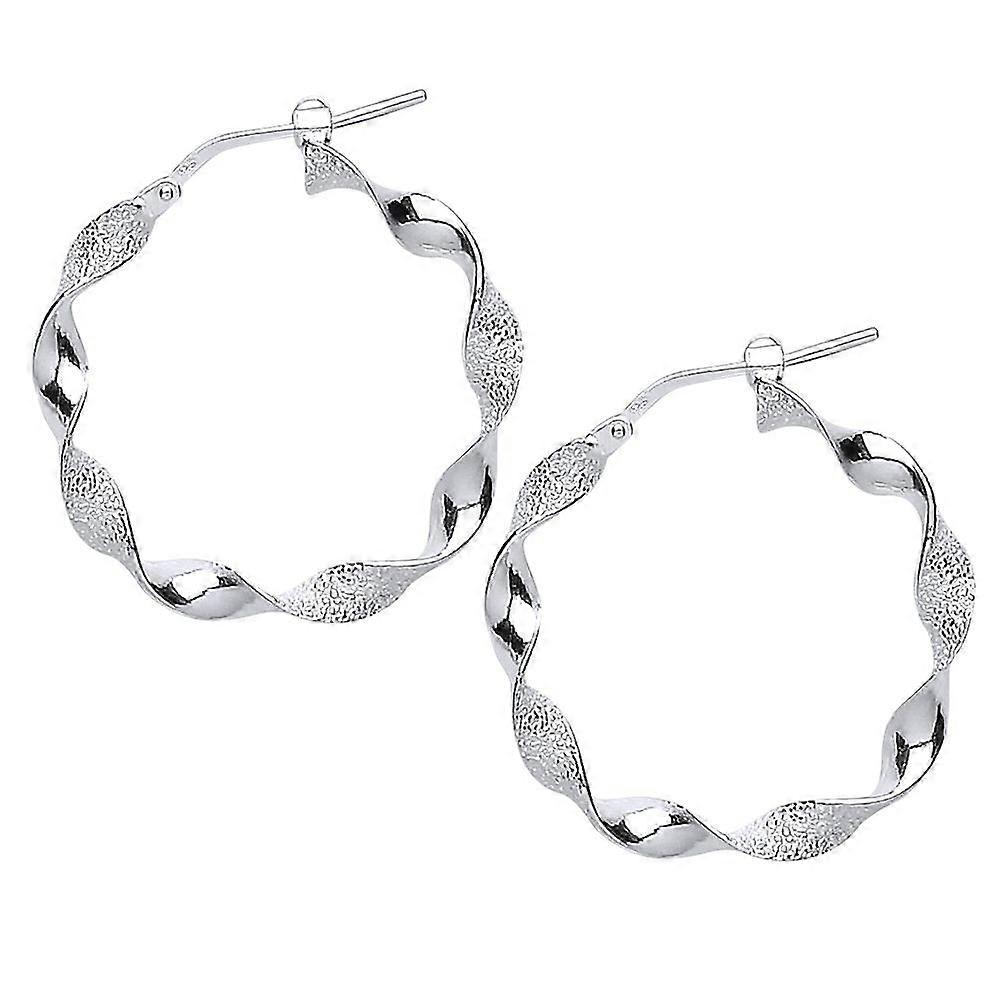 Jewelco London Ladies Sterling Silver Frosted Candy Twist Hoop Earrings 27mm 4mm