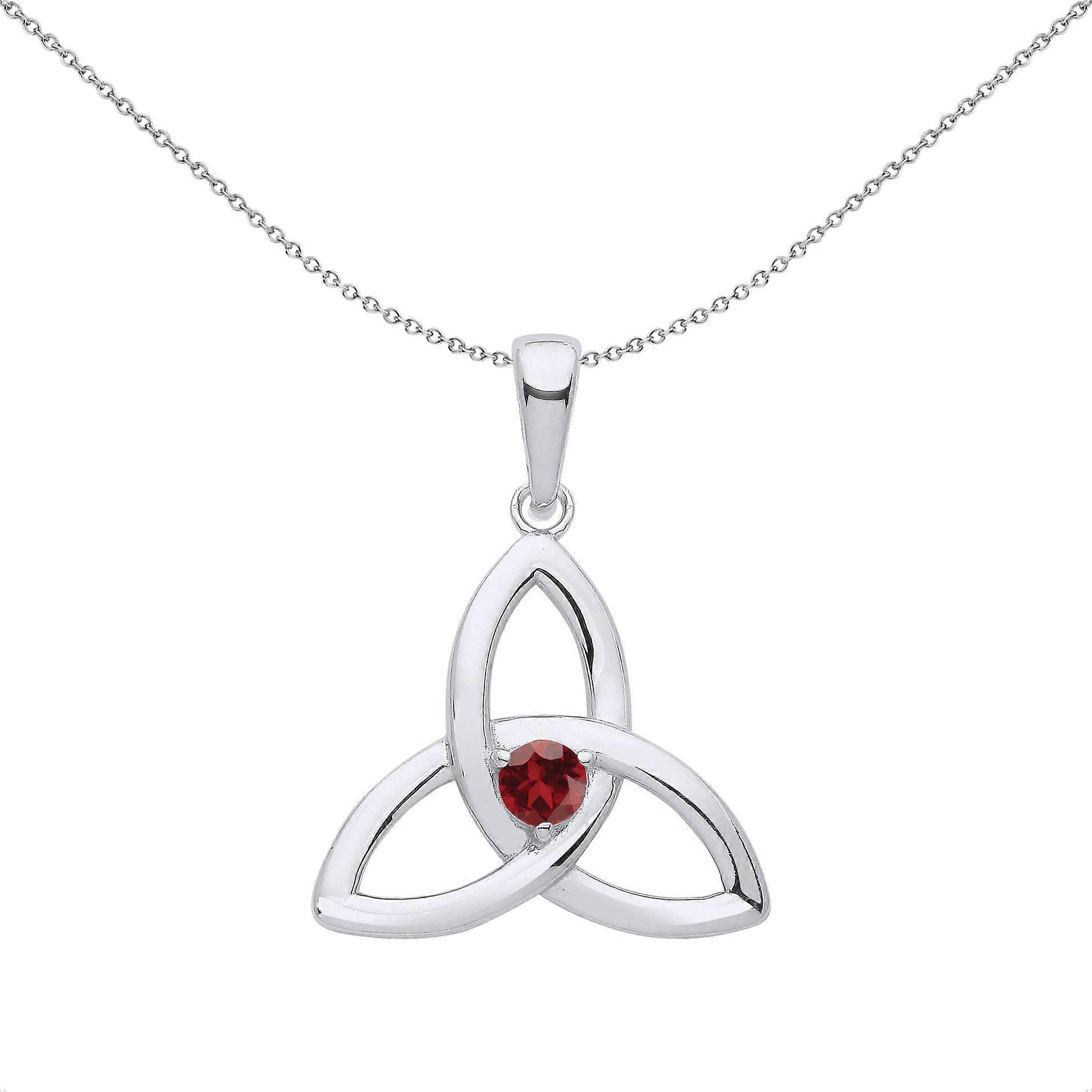 Jewelco London Ladies Sterling Silver Garnet CZ Celtic Trinity Trefoil Triquetra Knot Solitaire Pendant Necklace 18 inch