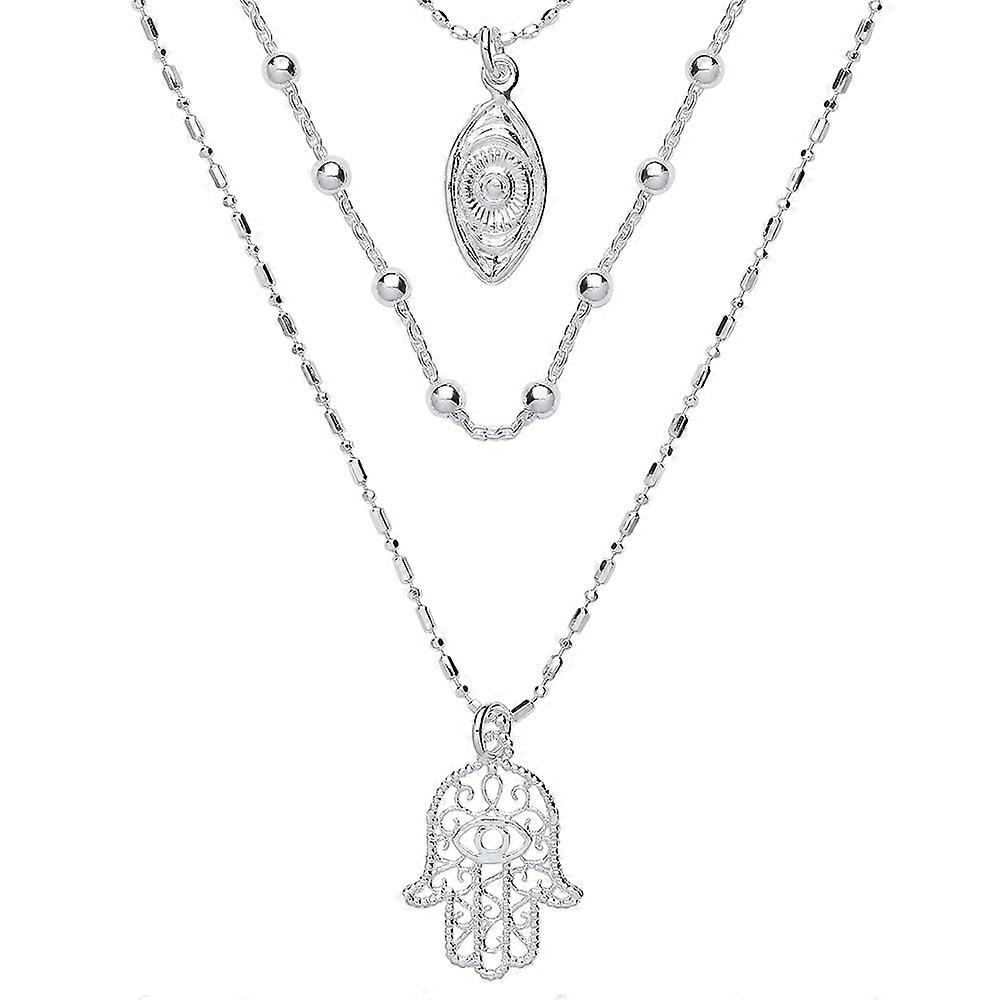 Jewelco London Ladies Sterling Silver Hamsa & Anti Evil Eye Bead Necklace 16 inch