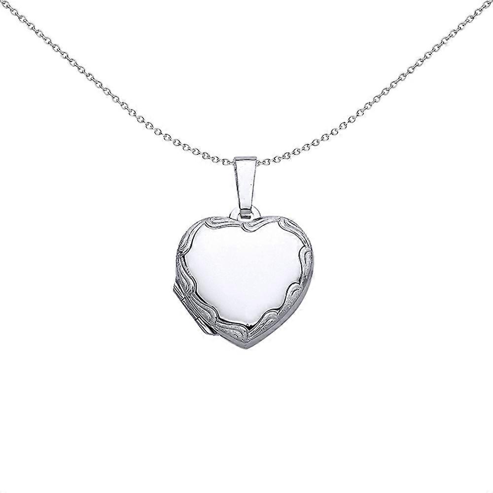 Jewelco London Ladies Sterling Silver Heart Wave Frame Locket Necklace 18 inch
