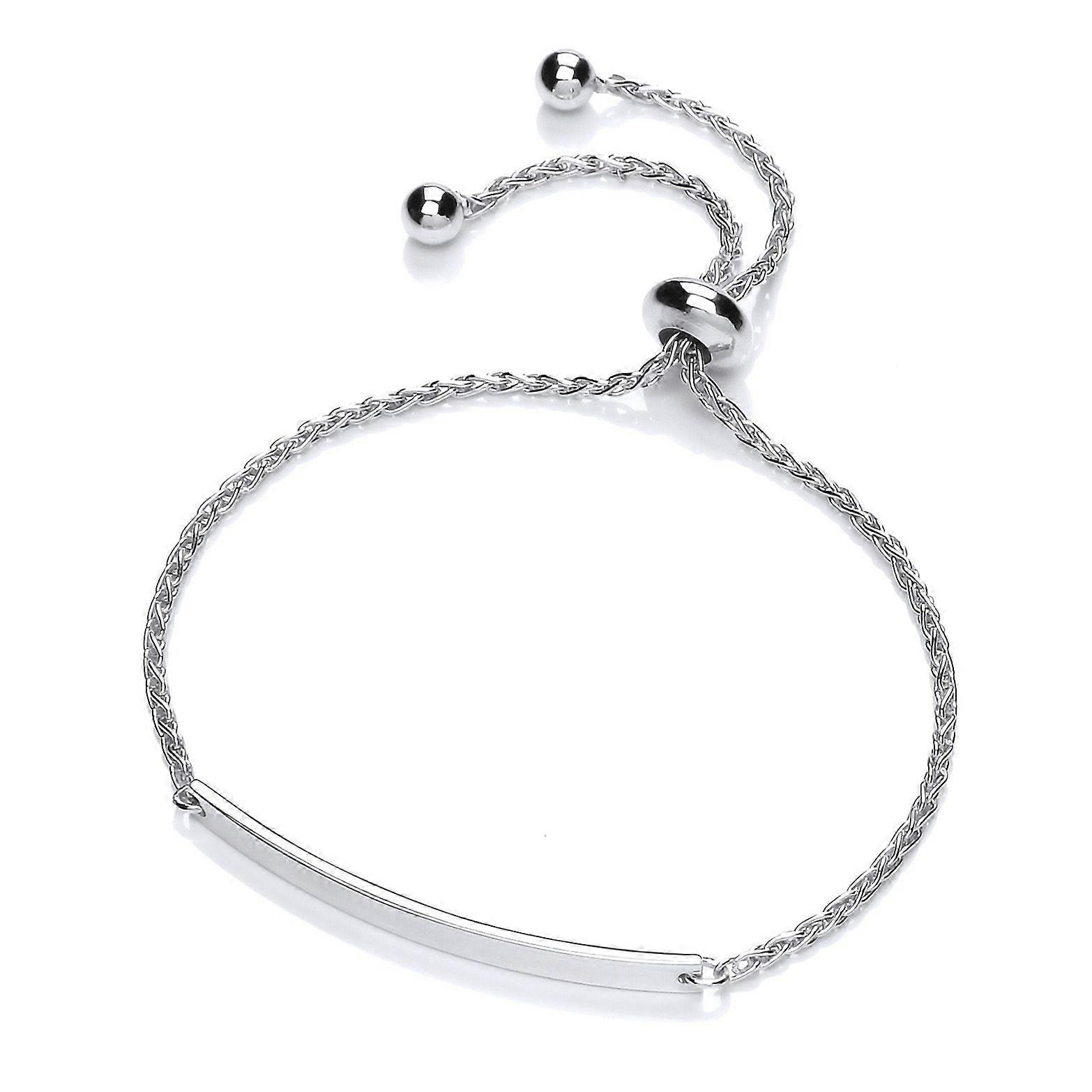 Jewelco London Ladies Sterling Silver ID Bar Spiga Chain Adjustable Slider Bracelet - Any Length Up To 7.5"