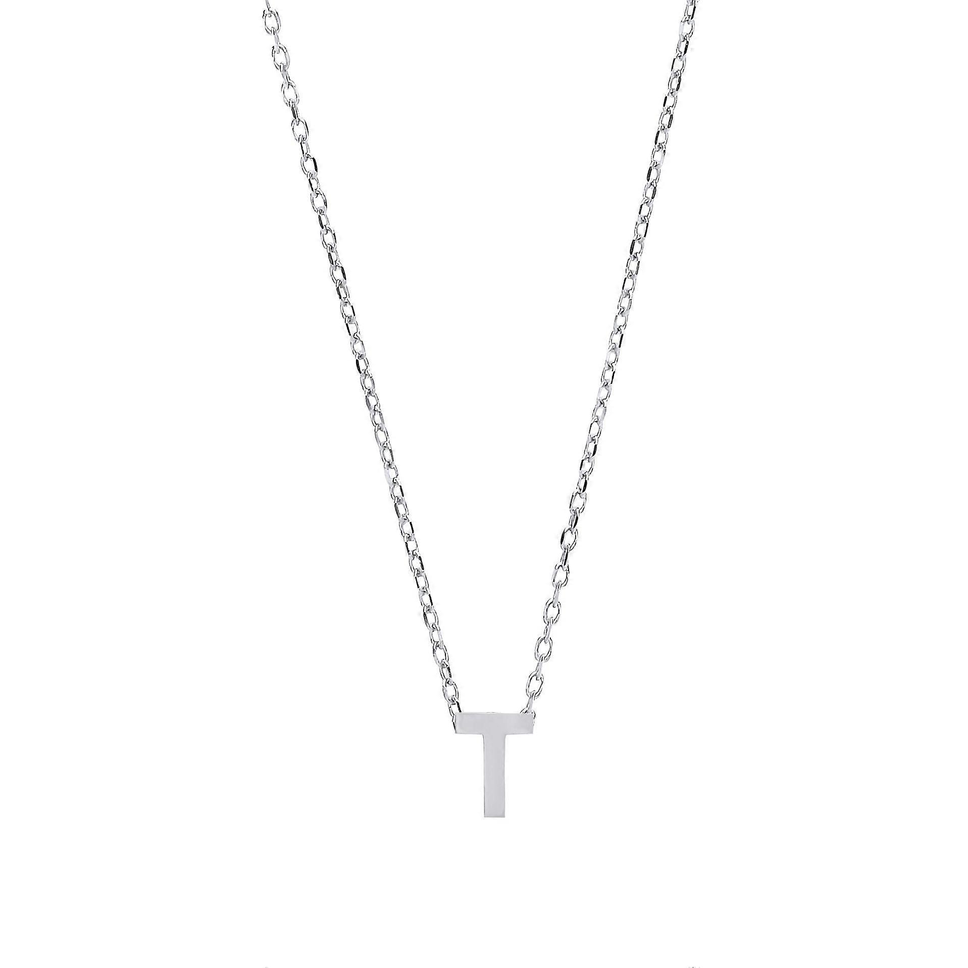 Jewelco London Ladies Sterling Silver Letter T Initial Pendant Necklace 18 inch