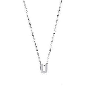 Jewelco London Ladies Sterling Silver Letter U Initial Pendant Necklace 18 inch