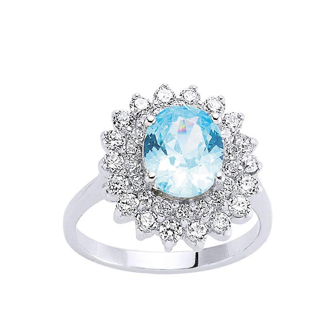 Jewelco London Ladies Sterling Silver Light Blue Oval Cubic Zirconia Royal Cluster Engagement Ring