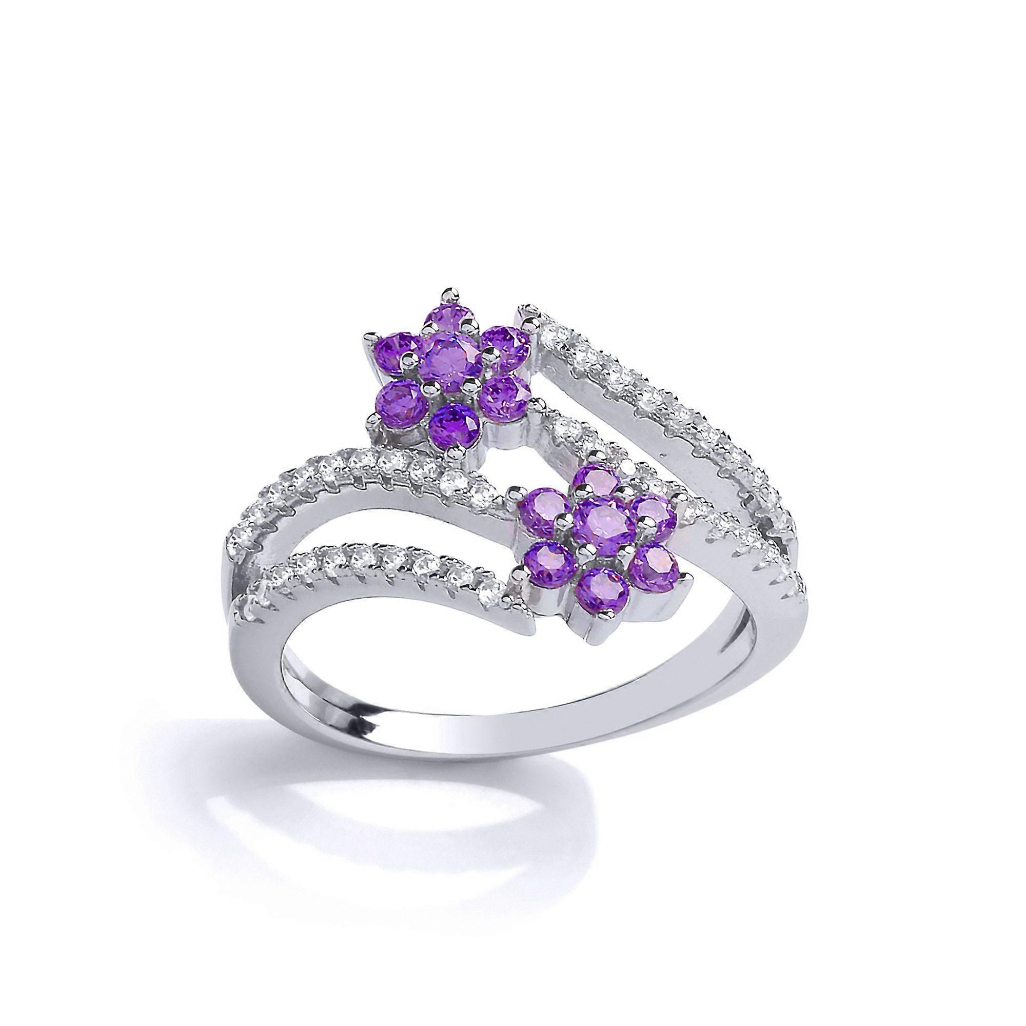 Jewelco London Ladies Sterling Silver Lilac Cubic Zirconia Split Shoulder Twin Daisy Crossover Dress Ring