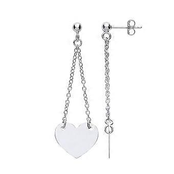 Jewelco London Ladies Sterling Silver Love Heart Ball & Chain Stud Drop Earrings