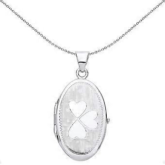 Jewelco London Ladies Sterling Silver Love Heart Clover Oval Locket Necklace 18 inch