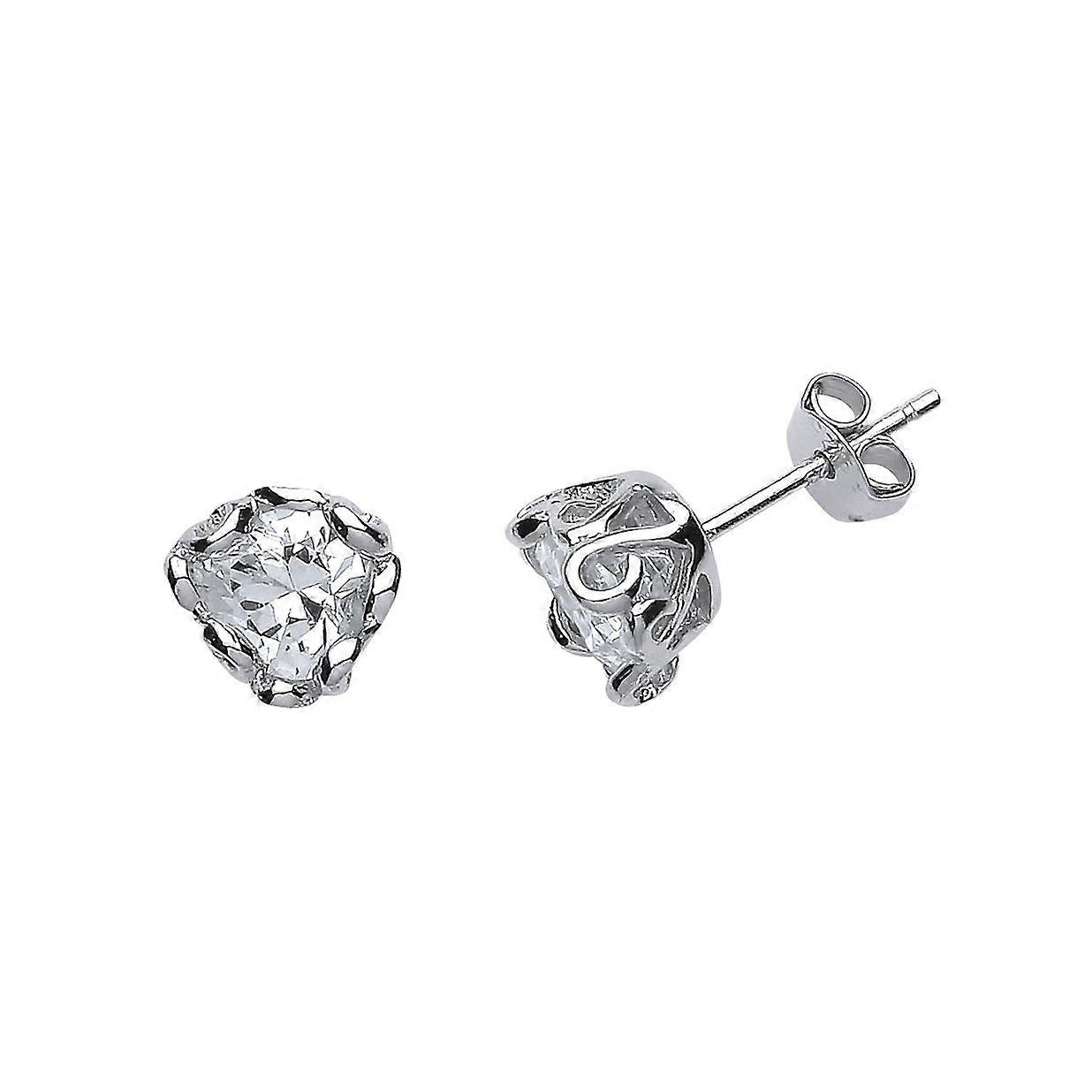 Jewelco London Ladies Sterling Silver Love Heart Cubic Zirconia 9s & 6s Scroll Stud Earrings