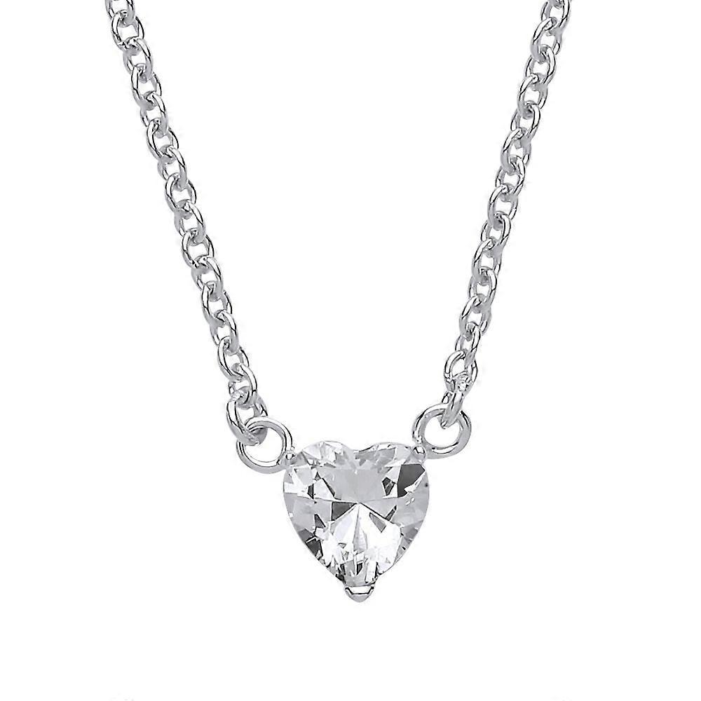 Jewelco London Ladies Sterling Silver Love Heart Cubic Zirconia Love Heart Solitaire Charm Pendant Necklace 16 + 2 inch