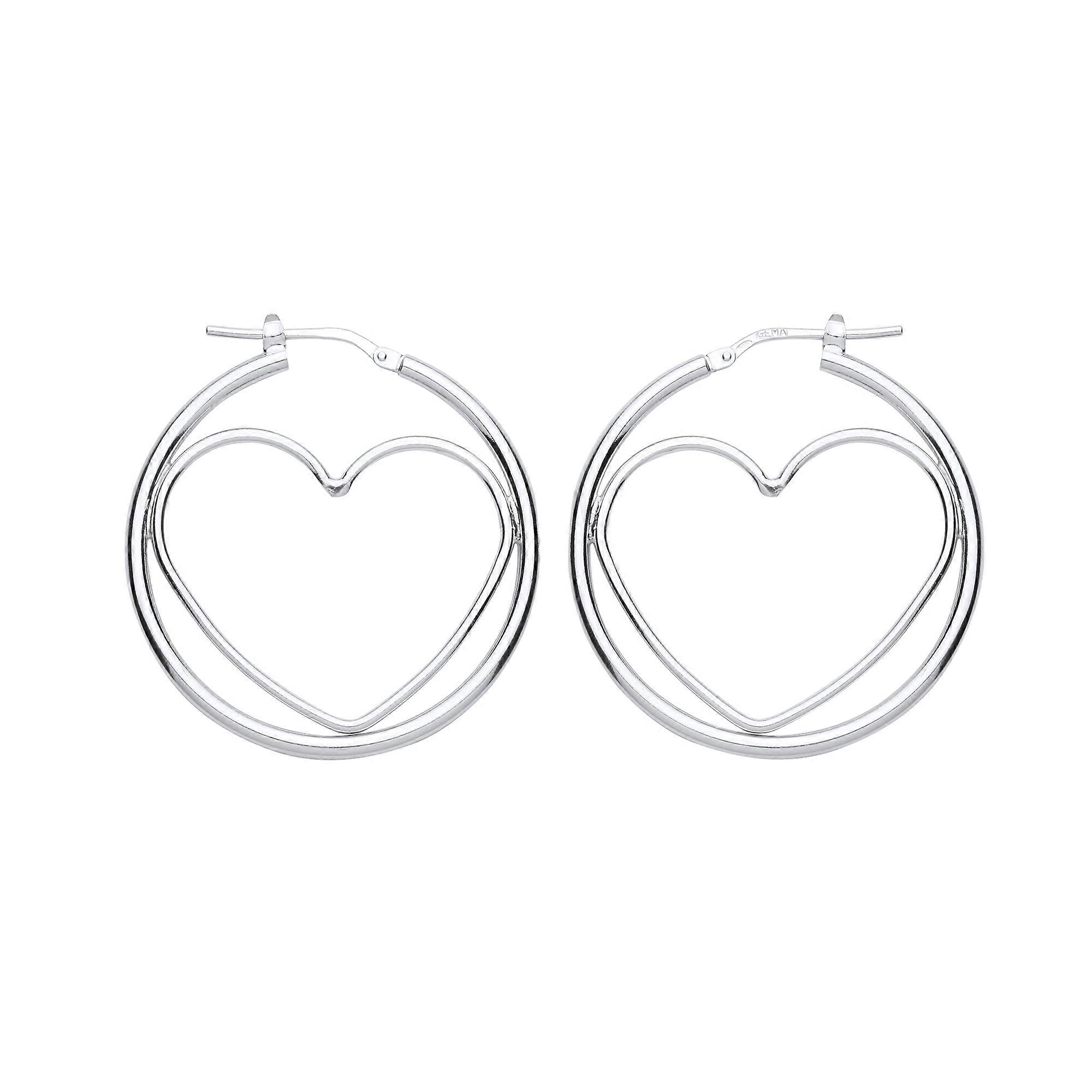 Jewelco London presents this piece from its latest collection of 925 Sterling Silver Rhodium Plated Jewellery. Ladies Rhodium Plated Sterling Silver Love Heart Outline Hoop Earrings 34mm . Height: 34mm Width: 34mm Weight: 5.7g SKU: ER100