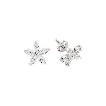 Jewelco London Ladies Sterling Silver Marquise Cubic Zirconia Flower Petal Stud Earrings