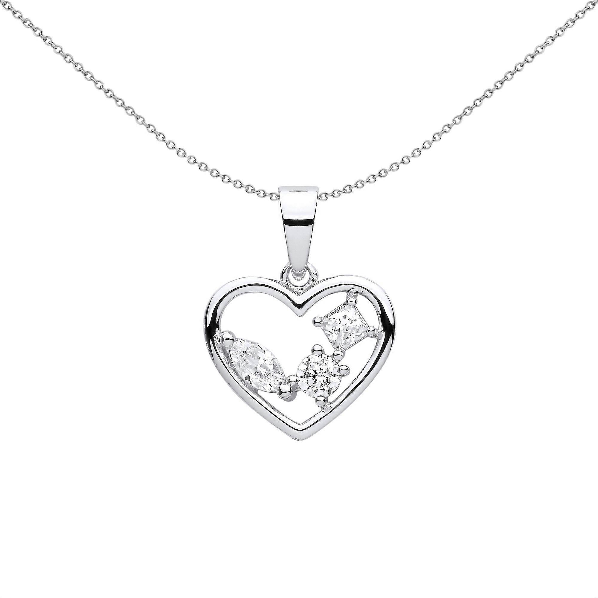 Jewelco London Ladies Sterling Silver Marquise Princess CZ Open Love Heart Multi Shape Cluster Pendant Necklace 18 inch