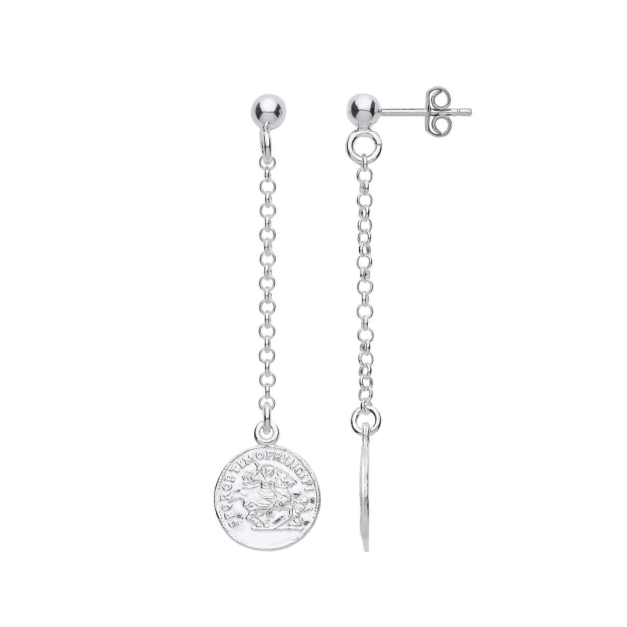 Jewelco London Ladies Sterling Silver Medallion Ball & Chain Stud Drop Earrings