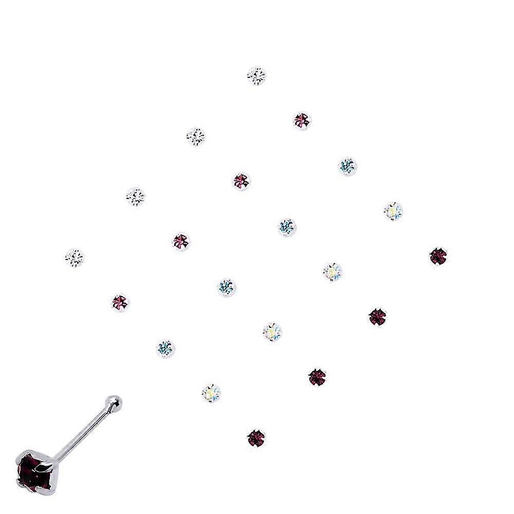 Jewelco London Ladies Sterling Silver Multi Colour Crystal Nose Studs - Pack of 20 2mm