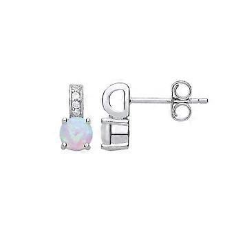 Jewelco London Ladies Sterling Silver Opal & Cubic Zirconia Solitaire Stud Drop Earrings