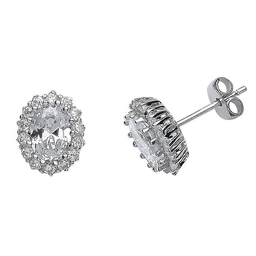 Jewelco London Ladies Sterling Silver Oval Cubic Zirconia Halo Stud Earrings
