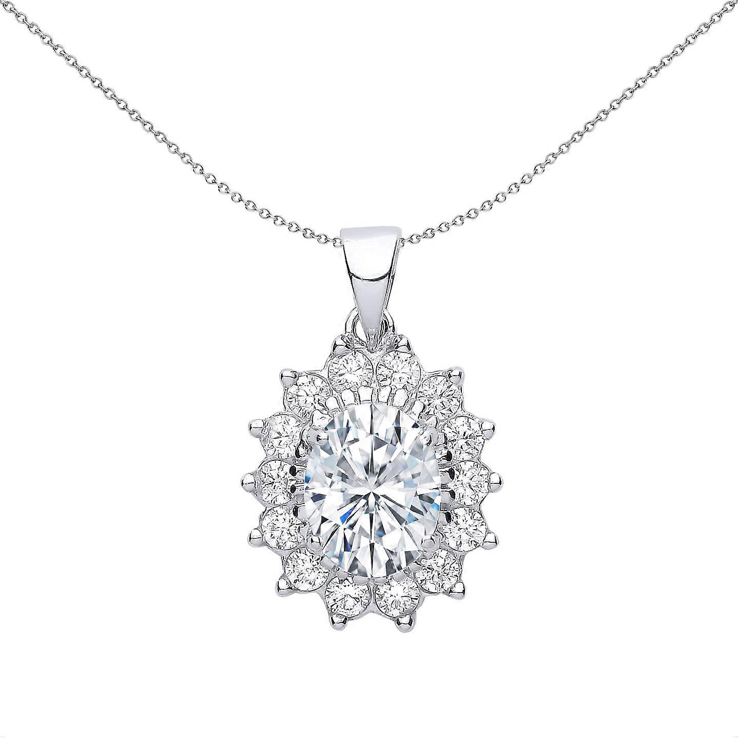Jewelco London Ladies Sterling Silver Oval Cubic Zirconia Royal Cluster Pendant Necklace 18 inch