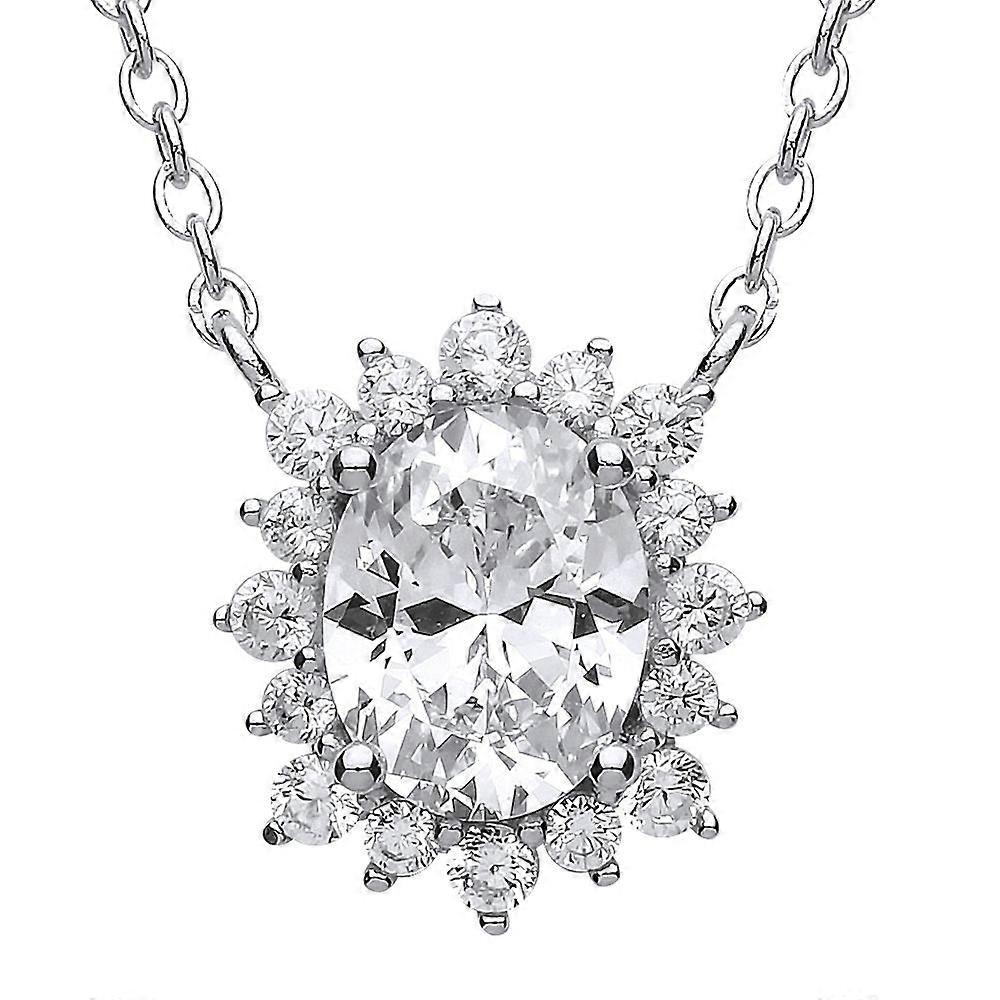 Jewelco London Ladies Sterling Silver oval Cubic zirconia Sunshine Cluster Solitaire Charm Necklace 15 inch