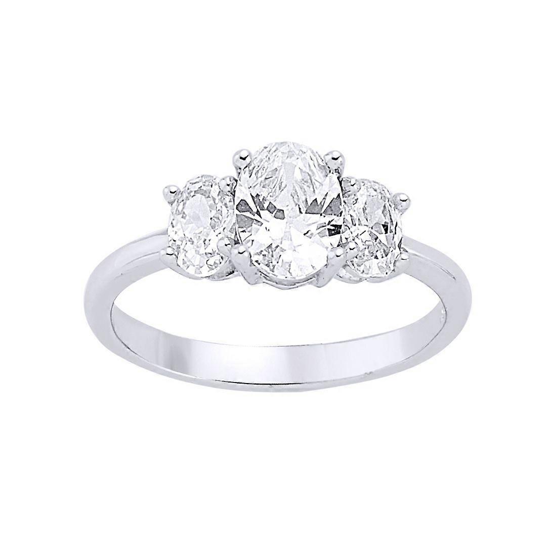 Jewelco London Ladies Sterling Silver Oval Cubic Zirconia Trilogy Engagement Ring