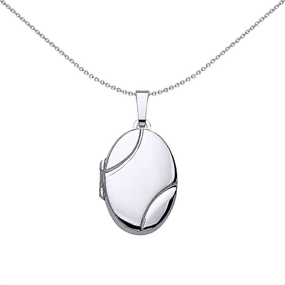 Jewelco London Ladies Sterling Silver Oval Grooved Locket Necklace 18 inch