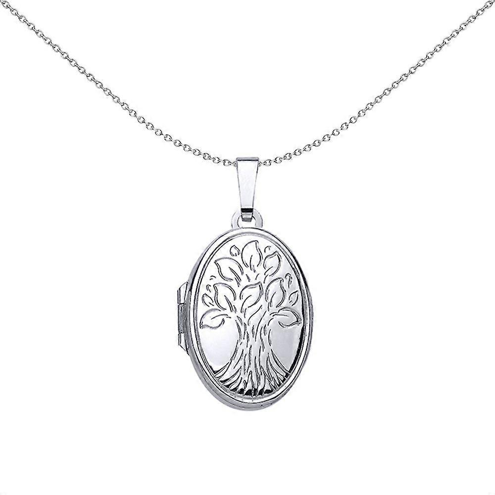 Jewelco London Ladies Sterling Silver Oval Leaves Locket Necklace 18 inch