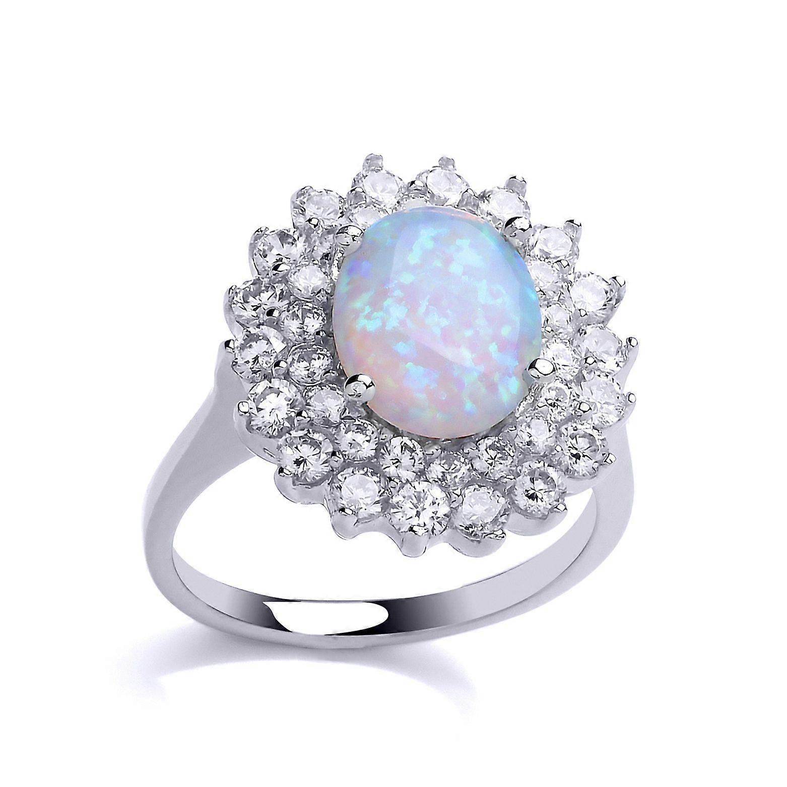 Jewelco London Ladies Sterling Silver oval Opal Royal Cluster Cluster Ring