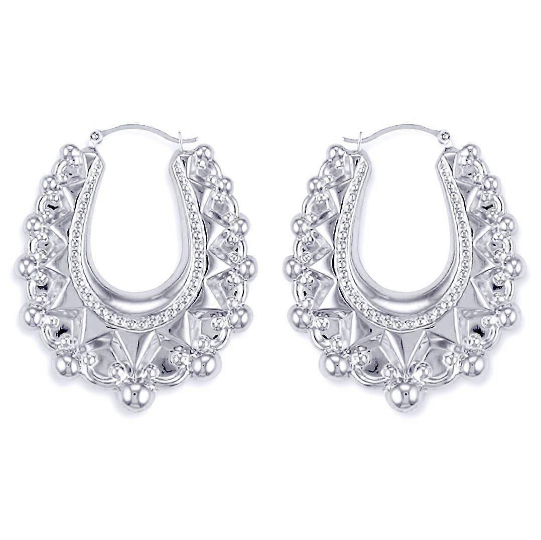 Jewelco London Ladies Sterling Silver Oval Pear Spikey Bead Creole Earrings 41mm