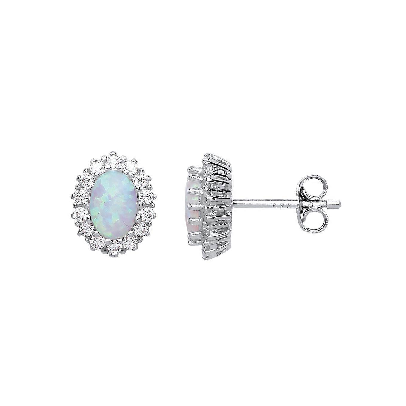 Jewelco London Ladies Sterling Silver oval Opal Royal Cluster Stud Earrings