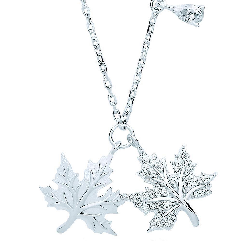 Jewelco London Ladies Sterling Silver Pear Cubic Zirconia Canada Maple Leaf Charm Necklace