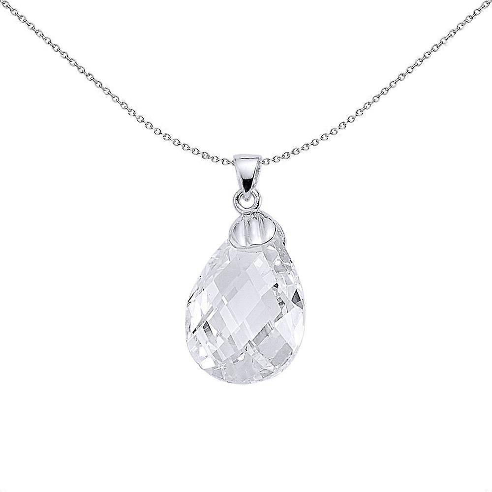 Jewelco London Ladies Sterling Silver Pear Cubic Zirconia Pear Drop Charm Necklace 18 inch