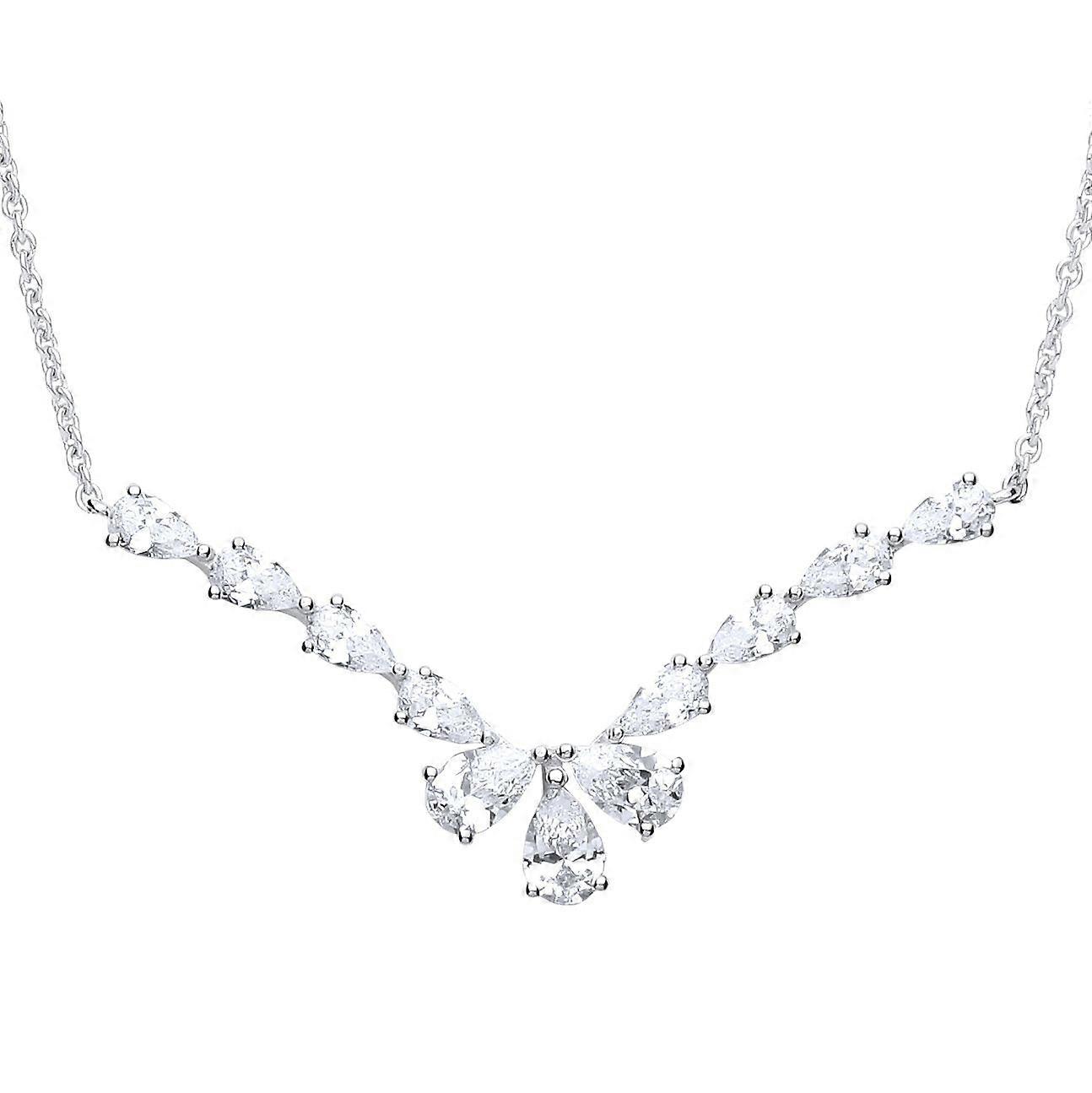 Jewelco London Ladies Sterling Silver Pear Cubic zirconia Snow Angel Charm Necklace 16 + 2 inch