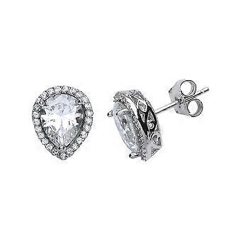 Jewelco London Ladies Sterling Silver Pear Cubic Zirconia Tears of Joy Stud Earrings
