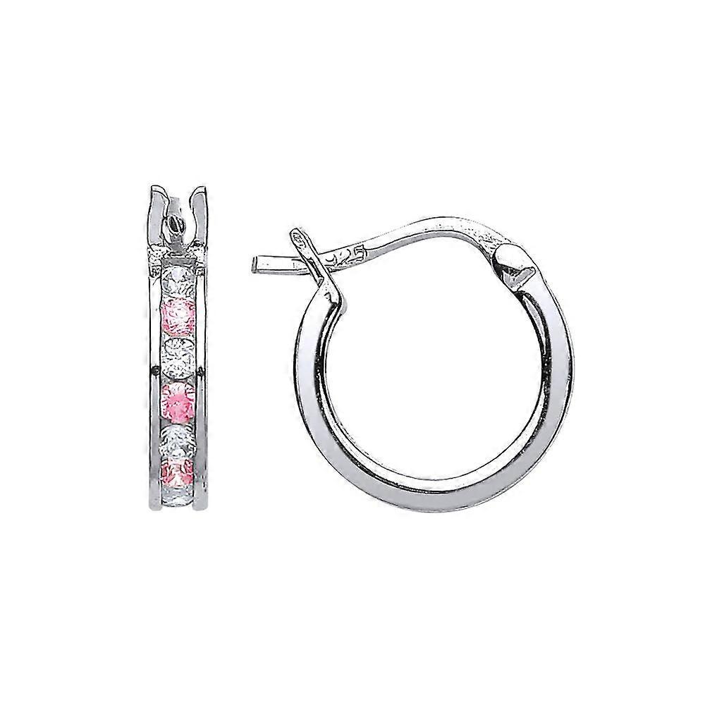 Jewelco London Ladies Sterling Silver Pink Cubic Zirconia Channel Set Eternity Hoop Earrings 12mm