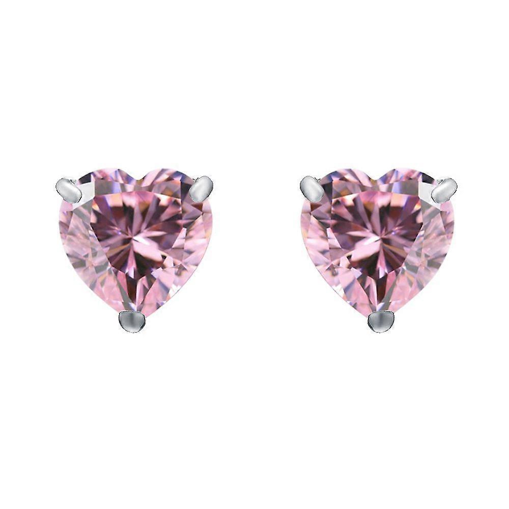 Jewelco London Ladies Sterling Silver Pink Heart Cubic Zirconia Love Heart Solitaire Stud Earrings 10mm 7.00cts