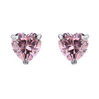 Jewelco London Ladies Sterling Silver Pink Heart Cubic Zirconia Love Heart Solitaire Stud Earrings 7mm 2.50cts